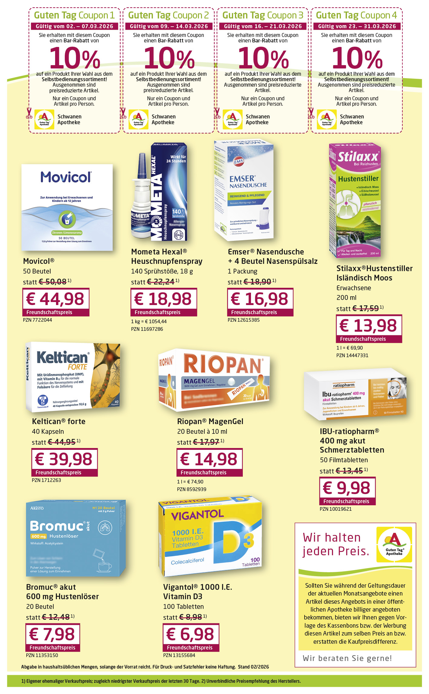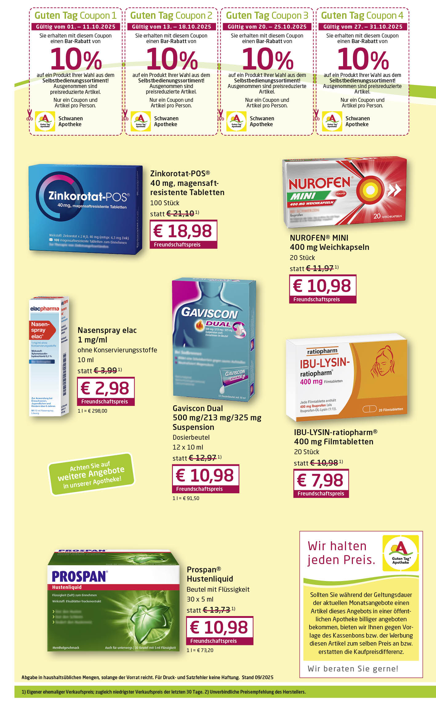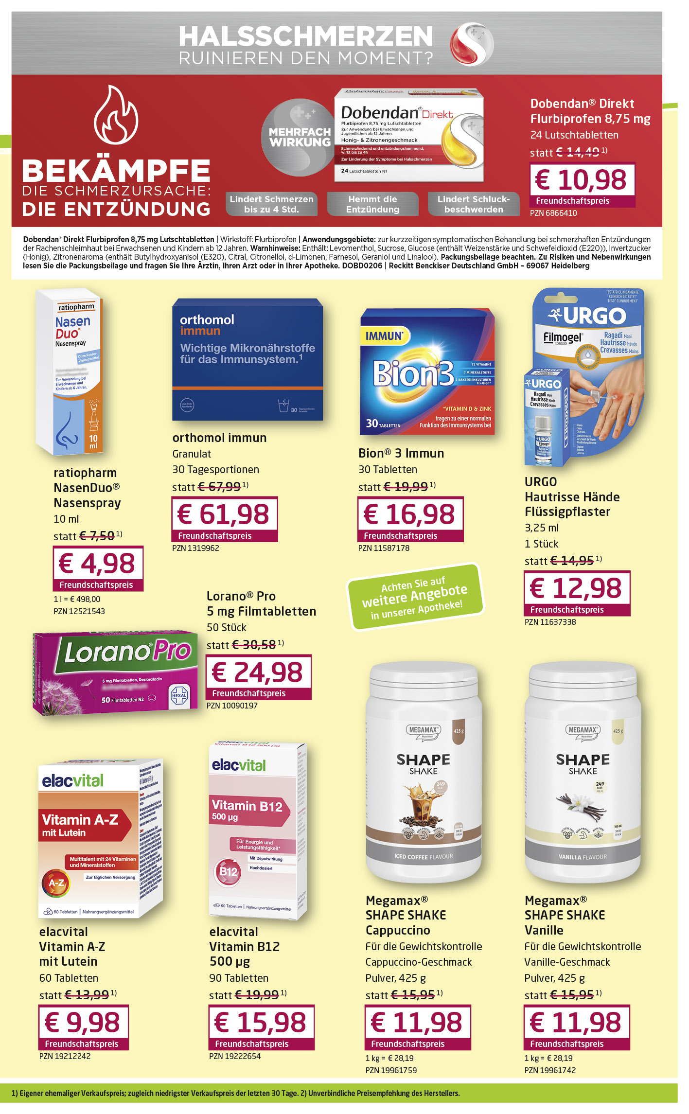 Jeden Monat Neu! Profitieren Sie von unseren attraktiven Sonderangeboten. Nutzen Sie ebenfalls den 10% Rabat-Coupon für den Einkauf eines Artikels Ihrer Wahl (nicht gültig für Sonderangebote und verschreibungspflichtige Medikamente)