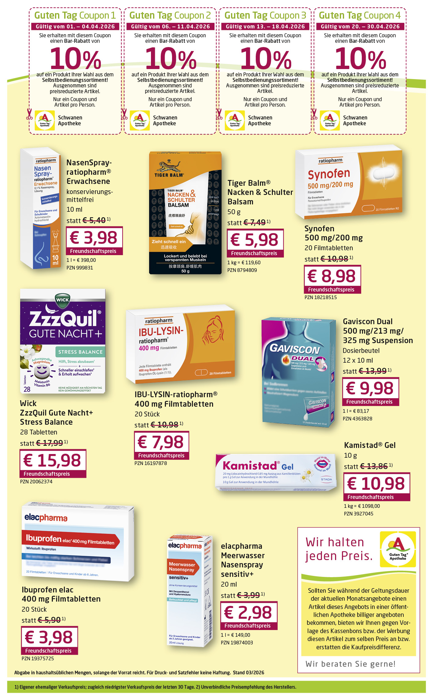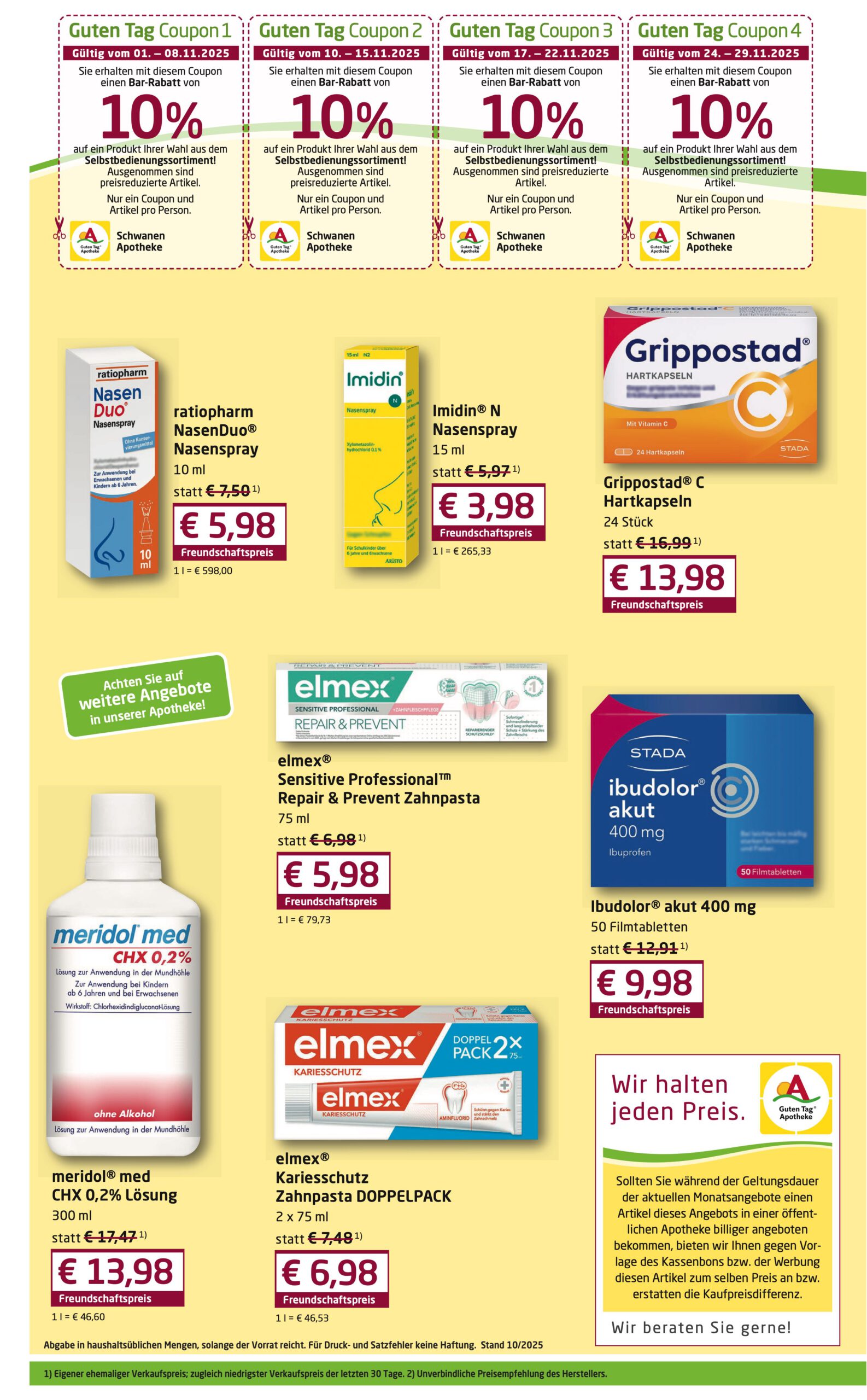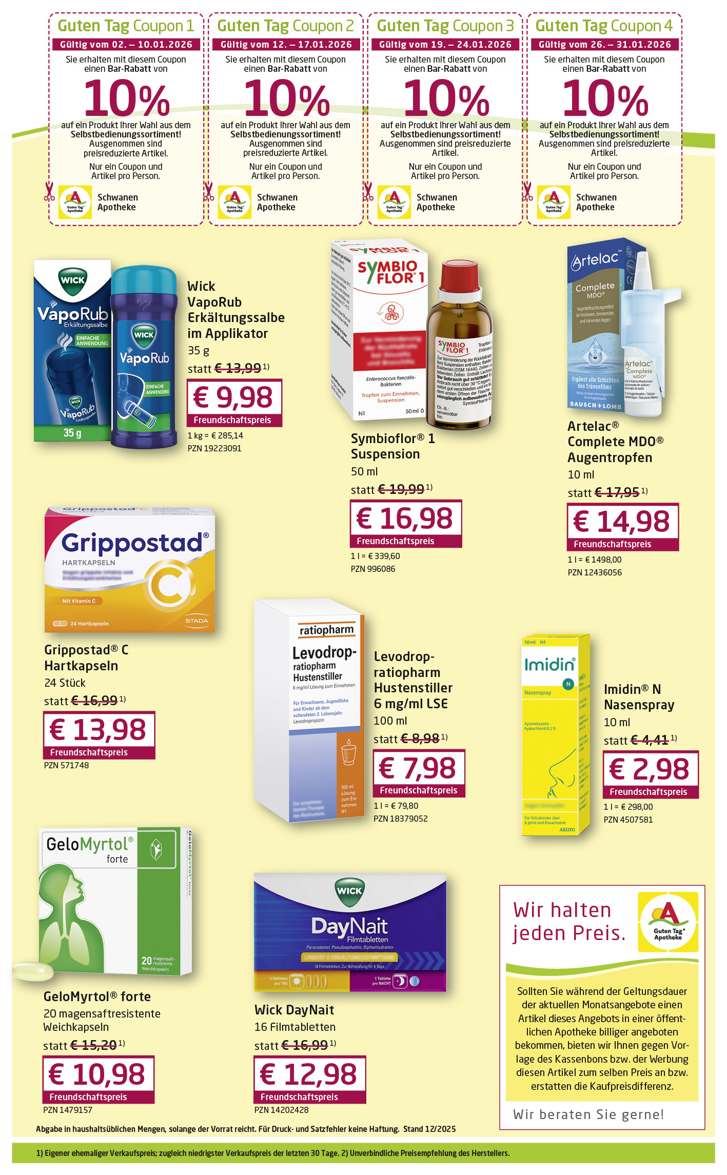 Jeden Monat Neu! Profitieren Sie von unseren attraktiven Sonderangeboten. Nutzen Sie ebenfalls den 10% Rabat-Coupon für den Einkauf eines Artikels Ihrer Wahl (nicht gültig für Sonderangebote und verschreibungspflichtige Medikamente)