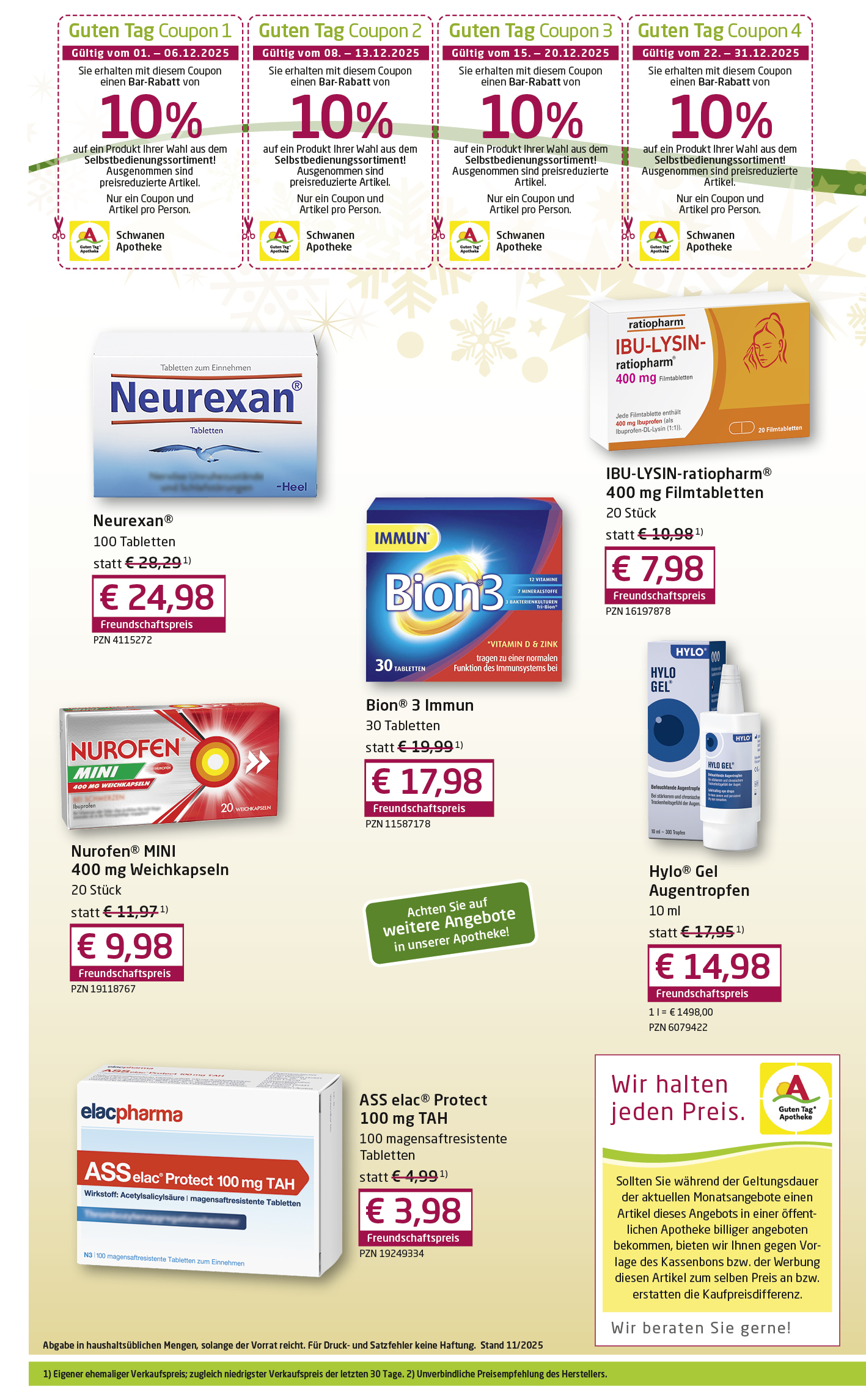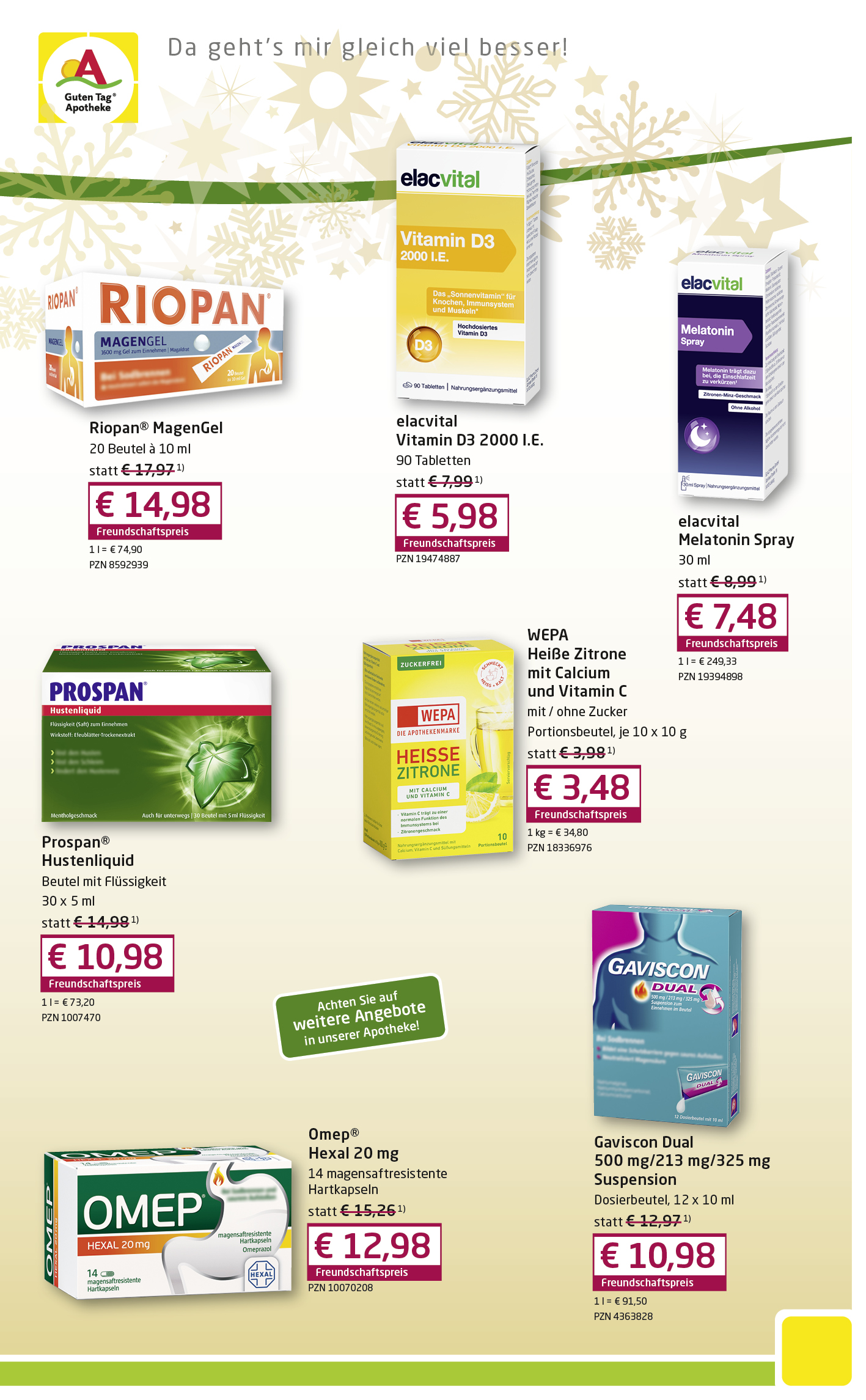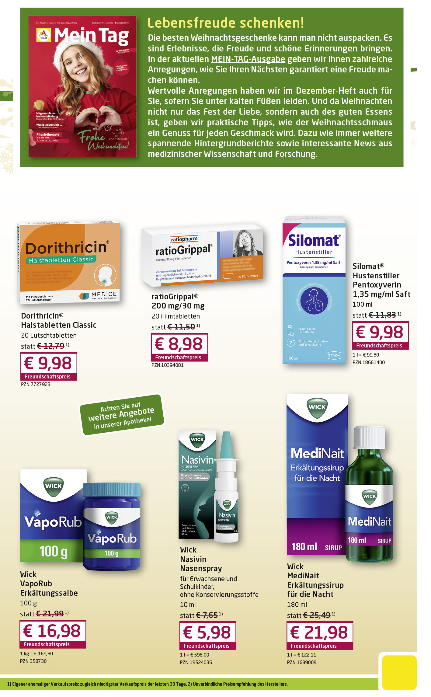 - Zeitschriften (Apotheken-Umschau, Mein-Tag, Senioren-Ratgeber, Diabetes-Ratgeber, Junior, Medizini) uvm.